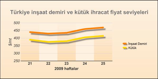 Son haftalarda güçlü seyreden hurda fiyatları nedeniyle uluslararası pazarlarda fiyat seviyeleri yükselen yarı mamul ve nihai mamul alıcı tarafında da geçtiğimiz altı haftaya oranla daha fazla kabul görmeye başladı. Nihai mamule Uzak Doğu ve Orta Doğu'dan gelen talebin yanında Mısırlı ithalatçıların da inşaat demiri sormaya başlaması nihai ve yarı mamule olan talebin artmasına sebep oldu.