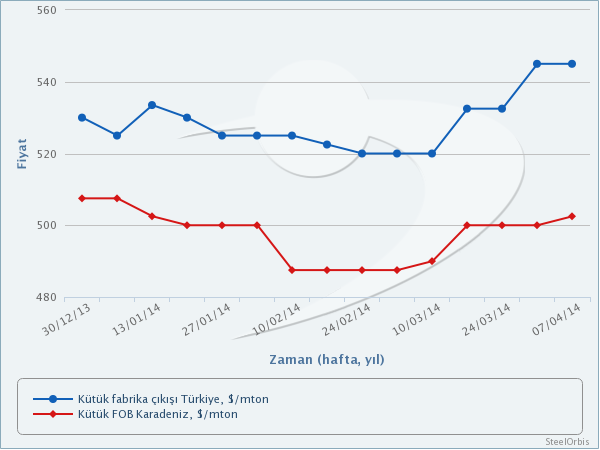 Öte yandan BDT'den Türkiye'ye verilen kütük teklifleri ise ithal hurda fiyatlarındaki yükselişten aldığı destekle bu hafta üst sınırdan 5$/mt yükselerek 518-535$/mt CFR seviyesinde yer almaya başladı. En son İskenderun bölgesinde 528$/mt CFR seviyesinden ithal kütük bağlantısının yapıldığı biliniyor.