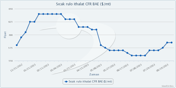 SteelOrbis'e piyasa kaynaklarından ulaşan bilgilere göre, Hindistan, Çin ve Rusya'dan BAE piyasasına verilen ekim ayı üretimi sıcak rulo teklifleri 580-590$/mt CFR aralığında bulunuyor.