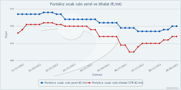 SteelOrbis’e piyasa kaynaklarından ulaşan bilgilere göre tatil sonrası talep artışı beklenen ve bu nedenle stokların artırıldığı Portekiz yassı çelik piyasasında talep yükselmedi. Tatil öncesi döneme göre 30€/mt (40$/mt) fiyat artışının gözlendiği piyasada kar marjlarında iyileşme olduğu bildiriliyor. Ancak düşük talep nedeniyle Portekiz yassı çelik piyasasında fiyatların gevşemesi bekleniyor.
