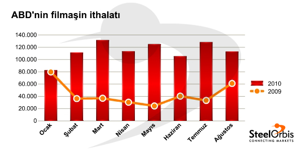 Bu seyir Ağustos ayında da sürdü. ABD Ticaret Bakanlığı'nın Çelik İthalatını İzleme ve Analiz (SIMA) verilerine göre, ağustos ayında ABD'ye yapılan filmaşin ithal etme izin başvuruları 118.168 mt seviyesinde gerçekleşti. Bu tonaj 2009 yılı ağustos ayı ithalat verilerine göre %85 artışa işaret ediyor. Ağustos ayında Kanada'nın filmaşin ithalatı, bu yılın önceki aylarıyla benzer seyrine devam ederken, Türkiye, Japonya ve Meksika ihracatını temmuz ayına göre yükseltti.