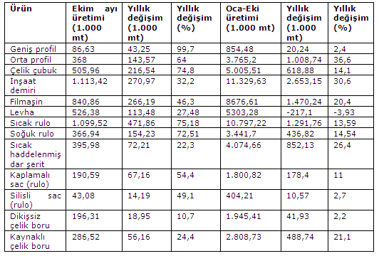 Çin'in kasım ayı ham çelik üretimi, 2008 yılı kasım ayına göre 12,56 milyon mt veya %37,36 oranında artarak 47,26 milyon mt oldu. Söz konusu dönemdeki ortalama günlük çelik üretimi, bir önceki aya göre 93.800 mt veya %5,62 oranında azalarak 1,58 milyon mt oldu. Bununla birlikte, ocak-kasım döneminde gerçekleşen ham çelik üretimi, 2008 yılının ilk on bir ayına göre %12,05 veya 55,73 milyon mt artarak 518,18 milyon mt seviyesine ulaştı.