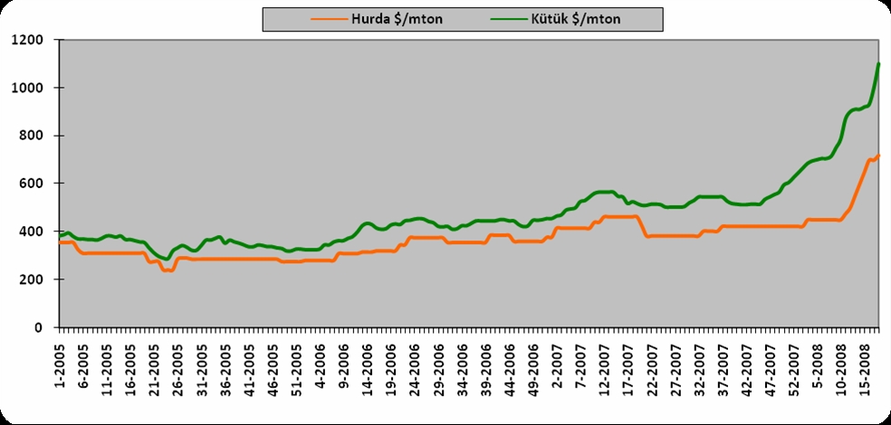 2008 yılına kadar gerçekleşen artışlarda önce hurda fiyatları yükselmiş veya düşmüş, daha sonra bundan kütük fiyatları etkilenmiştir. Ancak 2007 yılı sonunda gerçekleşen artışta önce kütük fiyatları yükselmiş ve hurda fiyatları onu takip etmiştir. Özellikle Orta Doğu ülkeleri yüksek petrol fiyatlarından kaynaklanan gelirlerini alt yapı ve inşaata yatırmaları ile oluşan inşaat demiri türü yapı malzemelerine olan talep, pazarda önce inşaat demirinin fiyatını ve kütük fiyatını yükseltmekte ve dolayısıyla sonradan bu durumu hurda takip etmektedir.