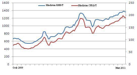 Hindistan menşeli %63,5 demir tenörlü cevherin şu anki fiyatı olan 170$/mt FOB baz alındığında, vergi oranındaki değişiklik sonrasında ürünün ihracat maliyeti 22-25$/mt yükselecek. Hindistan'dan yapılan cevher sevkiyatının, ihracatçıların kar marjlarının düşmesi sonucunda ciddi ölçüde azalması bekleniyor. Geçmişte de olduğu gibi, yeni vergi oranının uygulanmaya başlanması sonrasında, Hintli üretici ve trader'lar artan maliyetleri Çinli trader'lara yansıtacak. Bu durumun Çin'in zayıf seyreden demir cevheri pazarını desteklemesi bekleniyor. Hindistan, demir cevherine ihracat vergisi uygulamaya başladığı 2007 yılından beri oranları çeşitli kereler değiştirdi. Söz konusu tarihten bugüne kadar, Çin'in Hindistan'dan demir cevheri ithalatı istikrarlı olarak azaldı.