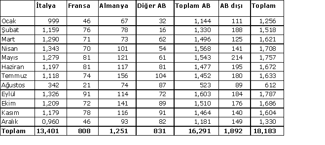 Aşağıdaki tablo, geçen yıl gerçekleşen İtalya hurda alımlarını göstermektedir (rakamlar bin metrik ton bazındadır):