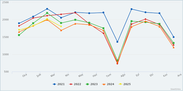 Uzun ve yassı mamul üretimlerine bakıldığında söz konusu ayda uzun mamul üretimi yıllık %6,5 artışla 1,1 milyon mt seviyesinde yer alırken, yassı mamul üretimi de yıllık %13,3 artışla 817.000 mt seviyesinde kaydedildi.