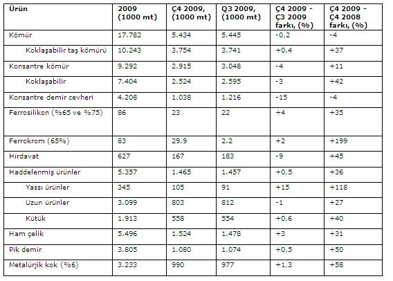 Sonuçları değerlendiren Mechel'in Kıdeml, Başkan Yardımcısı Vladimir Polin, "Krizin tepe noktasına ulaştığı 2008 yılının son çeyreğiyle karşılaştırıldığında, 2009 yılı son çeyrek sonuçlarında üretim hacmindeki düzelmenin karakteri açıkça görülecektir. Konsantre koklaşabilir taş kömürü üretimimizi %42, ferrokrom üretimimizi %199, çelik üretimini %31, metalürjik kok üretimini %58, haddelenmiş ürün üretimini %35 ve hırdavat üretimini %45 artırdık," dedi.