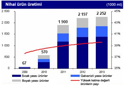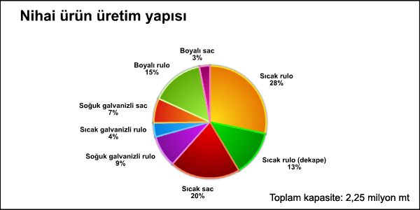 MMK-Atakaş'ın 2013 yılı nihai çelik ürünü üretim yapısı, %28 sıcak rulo, %20 sıcak sac, %15 boyalı rulo, %13 sıcak dekape rulo, %9 soğuk galvanizli rulo, %7 soğuk galvanizli sac ve %4 sıcak galvanizli rulodan oluşacak.