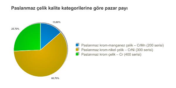 Rapora göre, krom-nikel çeliğin pazar payı, yılın ilk çeyreğinde, 2008 yılı geneline göre büyük ölçüde aynı kalırken, otomobil üretiminde yaşanan küresel daralma sonucunda paslanmaz krom çeliğin pazar payında nispeten yüksek oranda azalma olmuştur. Çin yerel piyasasında artan talep nedeniyle krom-manganez kalitelerin pazar payı bir miktar artmıştır.