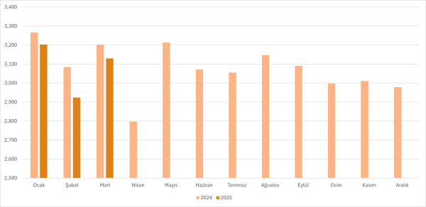 Söz konusu ayda Türkiye’nin nihai mamul tüketimi yıllık %23,2 düşüşle 2,6 milyon mt, Ocak-Mart döneminde ise yıllık %7,3 düşüşle 9,06 milyon mt seviyesine indi.