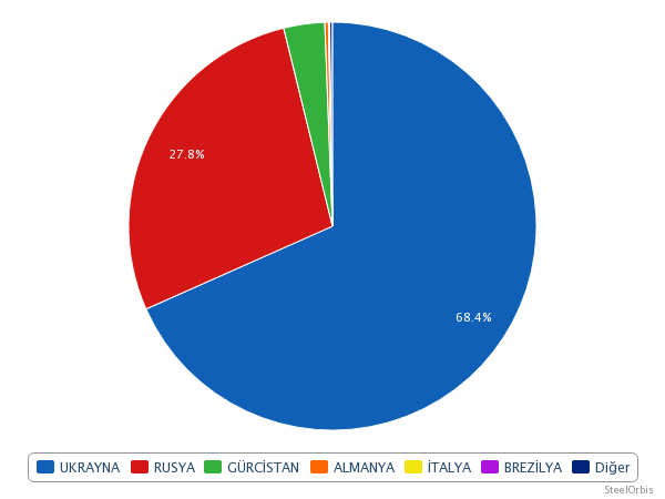 Türkiye'nin bu yılın ocak ayında en çok kütük ve blum ithal ettiği ülkelerin dağılımı şu şekildedir: