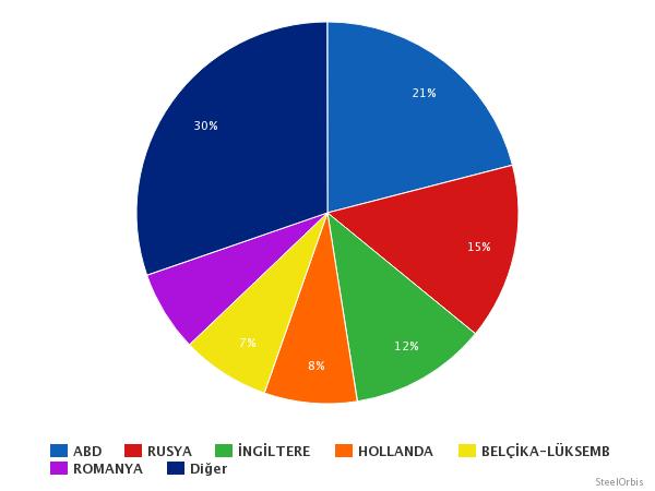 İlk 11 ayda, Türkiye’nin en fazla hurda ithal ettiği ülke yıllık %23,2 düşüşle 3,73 milyon mt alım yapılan ABD oldu. ABD’yi yıllık bazda %42,1 artışla 2,65 milyon mt hurda ithal edilen Rusya takip etti. Yalnızca 2014 yılı kasım ayında ise Türkiye’nin en fazla hurda alımı yaptığı ülke yıllık bazda %70 artışla 478.632 mt ihraç eden ABD oldu.