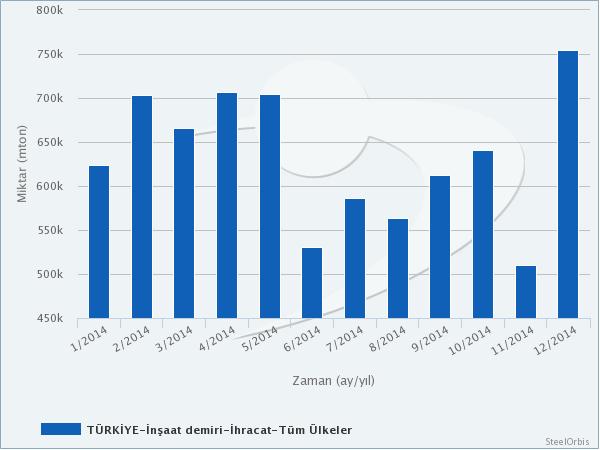 Türkiye İstatistik Kurumu (TÜİK) tarafından sağlanan verilere gore, 2014 yılının aralık ayında Türkiye'nin inşaat demiri ihracatı yıllık %1,16 ve aylık %47,8 artışla 754.299 metrik tona ulaştı. Bununla birlikte bu ihracattan sağlanan gelir 2013 yılının aralık ayına kıyasla %13 düşüşle ve geçtiğimiz aya oranla %38,5 artışla 377,74 milyon $ oldu.