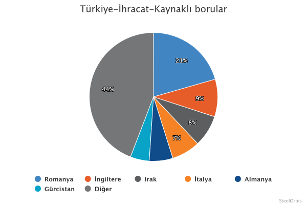 Aynı dönemde Türkiye’nin en çok kaynaklı boru ihracatı yaptığı ülke yıllık %17 düşüşle 93.512 mt ile Romanya oldu. Romanya’yı, 42.802 mt kaynaklı boru ithal eden İngiltere ve 36.142 mt ithalat yapan Irak takip etti.