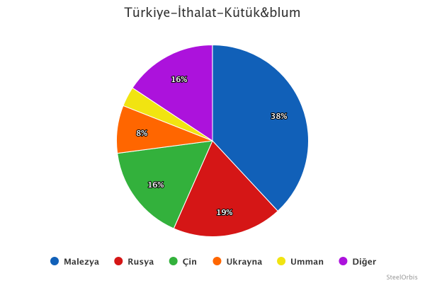 Bu yılın ilk iki ayında ise, Türkiye'nin kütük ve blum ithalatı yıllık %52,4 artışla 628.088 mt olurken, bu ithalatın değeri ise yıllık %36,6 artışla 325,39 milyon $ seviyesine çıktı.