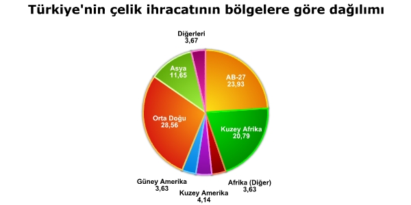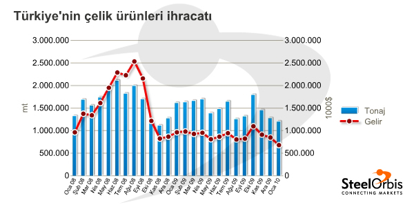 İstanbul Maden ve Metaller İhracatçı Birlikleri (İMMİB) tarafından sağlanan geçici verilere göre, 2010 yılı ocak ayında Türkiye'nin toplam çelik ürünü ihracatı, tonaj bazında bir önceki yılın aynı dönemine göre %25,75 düşüşle 1,22 milyon mt seviyesine geriledi. Söz konusu dönemde elde edilen ihracat geliri ise 2009 yılı ocak ayına göre %29,67 oranında azalarak 681,16 milyon $ oldu.