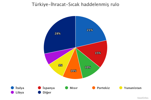 Aynı dönemde Türkiye’nin en çok sıcak rulo sac ihraç ettiği ülke 82.326 mt ile İtalya oldu. İtalya’yı, 56.498 mt sıcak rulo sac ithal eden İspanya ve 40.310 mt ithalat yapan Mısır takip etti.
