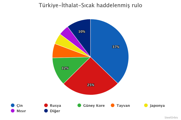 Aynı dönemde Türkiye’nin en çok sıcak rulo sac ithal ettiği ülke yıllık %24,5 düşüşle 243.073 mt sıcak rulo sac ihraç eden Çin oldu. Çin’i, 164.908 mt sıcak rulo sac ihraç eden Rusya ve 78.901 mt ihracat yapan Güney Kore takip etti.